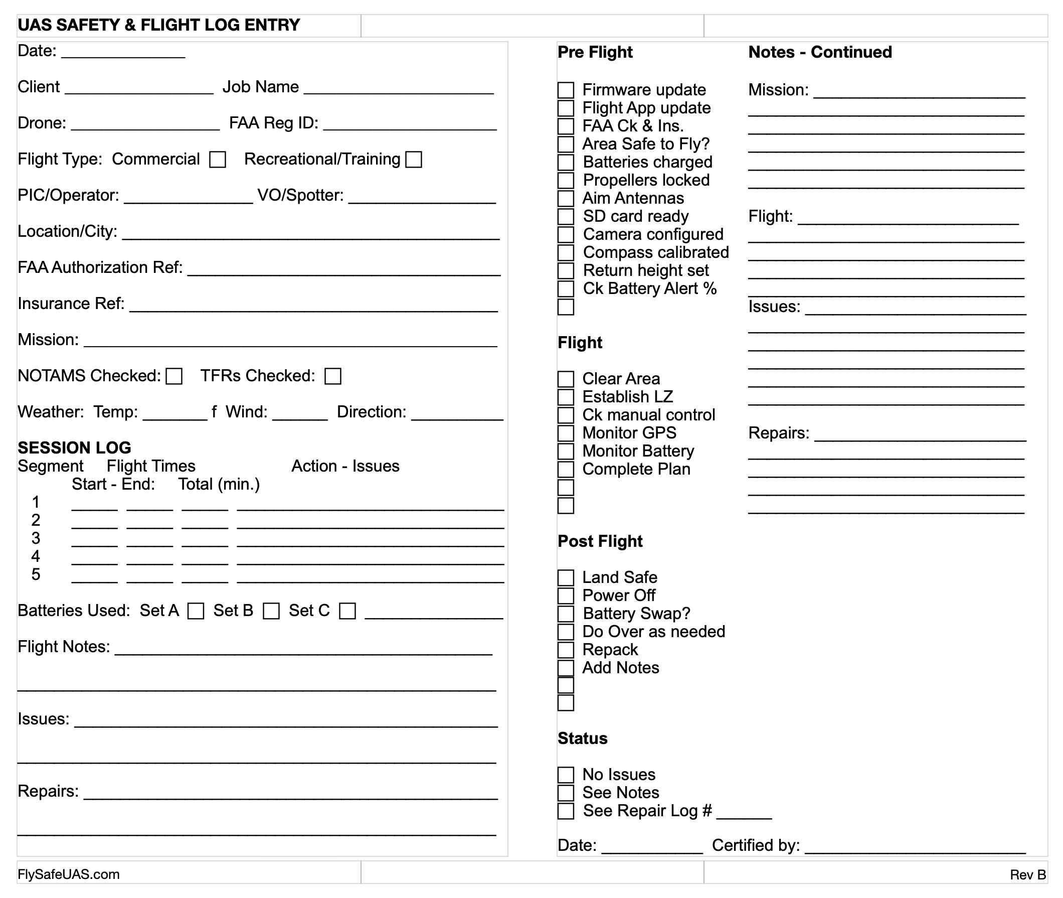 • Begin Job Log with flight plan notes, setting configuration, custom requirements.